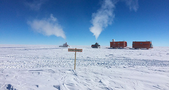 Pistenbully at marked drill site Little Dome C (Credit: Luca Vittuari, PNRA)